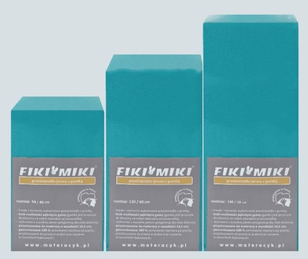 Prześcieradła Fiki Miki przystosowane są do wysokich materacy (14 cm). Wykonane są z delikatnych, polskich dzianin bawełnianych (jersey i frotte).