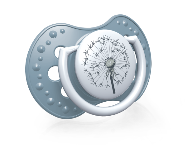 Główka smoczków wykonana jest z silikonu, natomista tarcza i rączka z bezpiecznego plastki niezawierającego bisfenolu A.