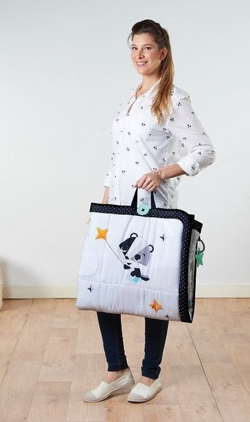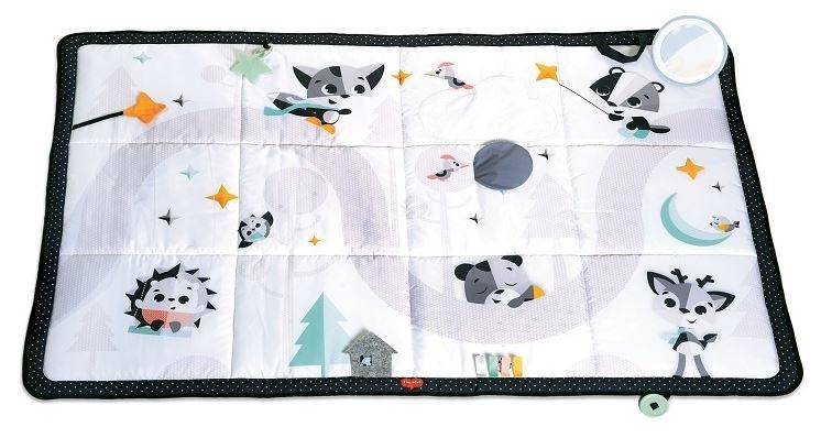 Pięknie zaprojektowana, duża, wyściełana i czarno-biała mata do zabawy, która posiada wiele funkcji i różnorodnych materiałów, regulowane lusterko i stymulujące cechy. Uniwersalne miejsce do zabawy w domu i na zewnątrz.