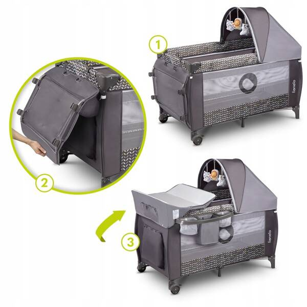 Już od narodzin dziecko może spać w łóżeczku od Lionelo, dzięki dwóm poziomom, rodzice nie muszą schylać się bardzo nisko by położyć maluszka spać. Materacyk pozwala na prawidłowe ułożenie kręgosłupa. Siateczkowe boki zapewniają prawidłową cyrkulację powietrza, a regulowany daszek sprawi, że w łóżeczku będzie jeszcze przytulniej i maluszkowi nic nie przeszkodzi w słodkim śnie. Przypinana do budki moskitiera jest bardzo łatwa w nałożeniu na łóżeczko i chroni przed insektami.