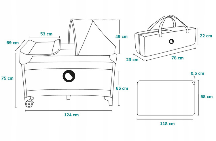 Wymiary złożonego łóżeczka w torbie podróżnej: