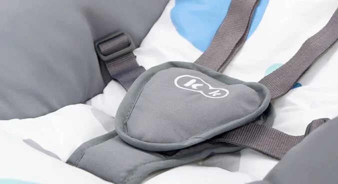 Bezpieczeństwo dziecka zapewniają 5-punktowe pasy z ochraniaczami.