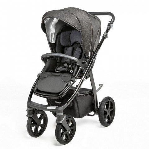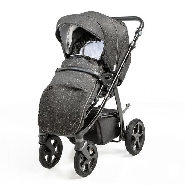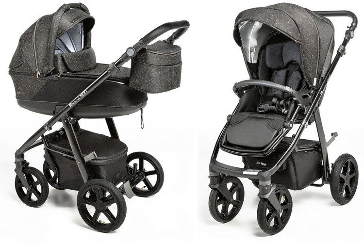 Stelaż wózka next ma służyć rodzicom i dzieciom nawet przez 4 lata. Aby był jak najlżejszy, został wykonany z trwałego aluminium. Wózek wyposażony jest w 4 bezobsługowe koła, których nie da się przebić, ani nie trzeba pompować. Wnętrze kół wypełnia super lekka tzw. pianka EVA, która zapewnia doskonałą amortyzację, a na zewnątrz kół znajduje się gumowa opona z bieżnikiem. Wózek posiada nowoczesny zabudowany mechanizm amortyzacji wszystkich kół - osłony chronią go przed zabrudzeniami i uszkodzeniami. Wpinany na stelaż pojemny kosz mieści wiele akcesoriów, a zapinana na zamek pokrywa zebezpiecza je przed wypadaniem.