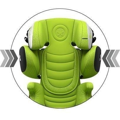 Dla pełnego bezpieczeństwa w przypadku zderzeń bocznych. Obszerna zabudowa fotelika została wykonana ze specjalnych materiałów pochłaniających energię.