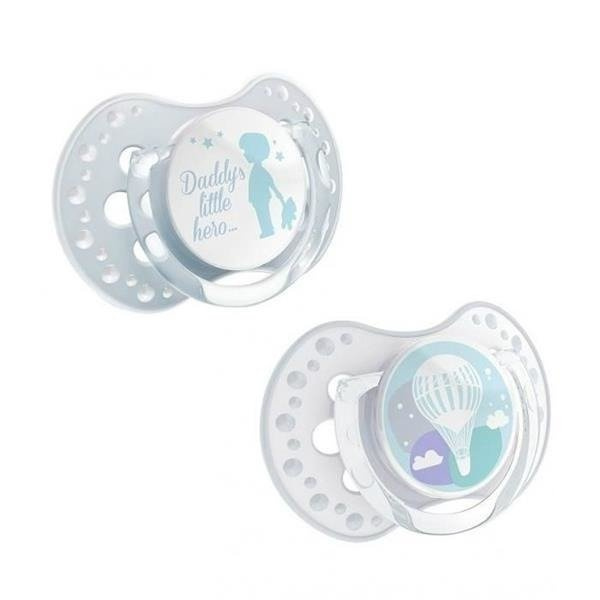 Tarczka smoczka posiada wypustki, dodatkowo wyprofilowano ją w taki sposób by dziecko nie miało problemów z oddychaniem.