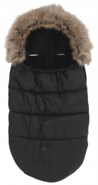 Kapturek śpiworka wykończony jest odpinanym wysokiej jakości ekologicznym futerkiem.