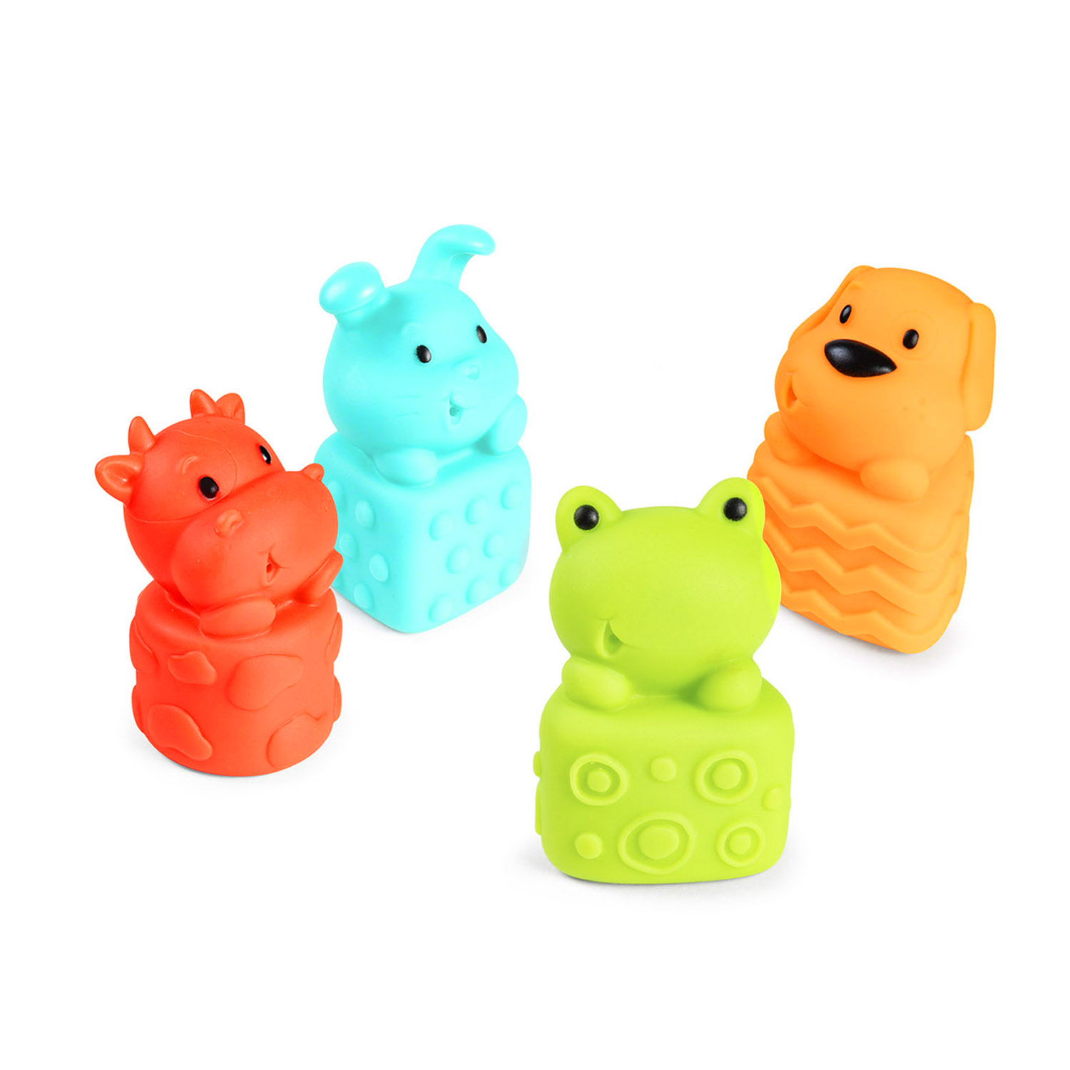 Zestaw zabawek kąpielowych ZWIERZAKI uatrakcyjnią dziecku codzienną kąpiel. Wykonane zostały z wysokiej jakości miękkiej gumy. Kolorowe zwierzątka uczą i bawią. Zabawki posiadają wypukłe kształty, dzięki czemu pobudzają receptory czuciowe dziecka. Zestaw składa się z 4 zabawek. Przeznaczony jest dla dzieci w wieku 12m+.