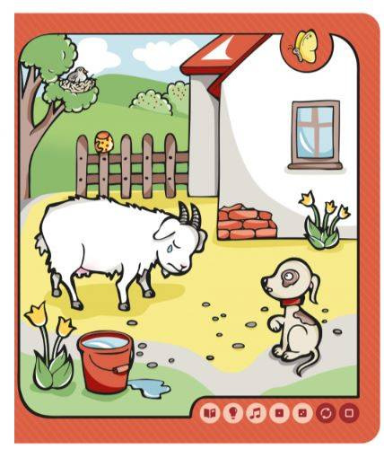 Interaktywa książka "Zwierzęta na wsi" przeniesie Cię w świat wiejskiego gospodarstwa oraz zabawnych perypetii zaginionego koźlątka.