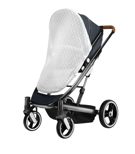 Wózek Mari ma bogate wyposażenie. Posiada ciepły pokrowiec do gondoli, moskitierę do spacerówki, ktorą można przechować podnóżku oraz praktyczną torbę dla rodzica, w której możemy schować akcesoria i drobiazgi.