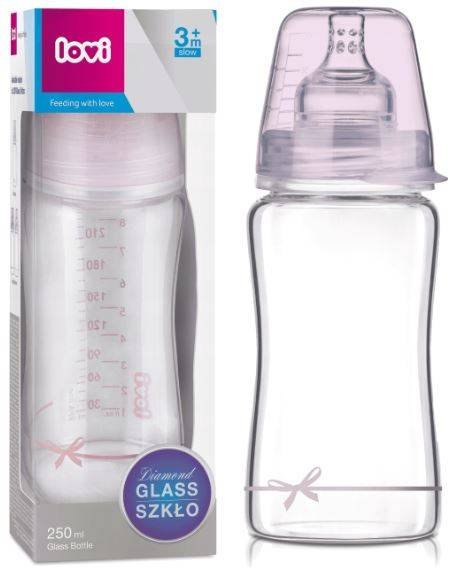 Lovi butelka szklana Diamond Botanic 250 ml wykonana została z lekkiego i jednocześnie odpornego szkła boro-krzemowego. Materiał ten jest bezpieczny dla dziecka i nie wpływa na smak czy jakość pokarmu. Butelka nadaje się do podgrzewania w kuchence mikrofalowej i bardzo dobrze utrzymuje temperaturę zawartości.
