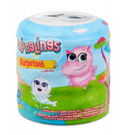 Springlings Surprise to zachwycające, wesołe, sprężynujące zwierzątka ukryte w Sprężydomkach. Zestawy Springlings to zabawa w odkrywanie, ponieważ do momentu otwarcia, nie wiadomo, jaki pluszaczek kryje się w swoim domku. Seria 2 składa się z 12 różnych rozkosznych stworzonek do kolekcjonowania. Sprężydomek posiada otwór, przez który zerkają Sprinlingsy swoimi dużymi, błyszczącymi oczkami, czekając na swojego nowego przyjaciela, który je przygarnie. Gdy wieko opakowania zostanie uniesione, z domku wyskoczy prześliczny pluszaczek - gotowy do zabawy!