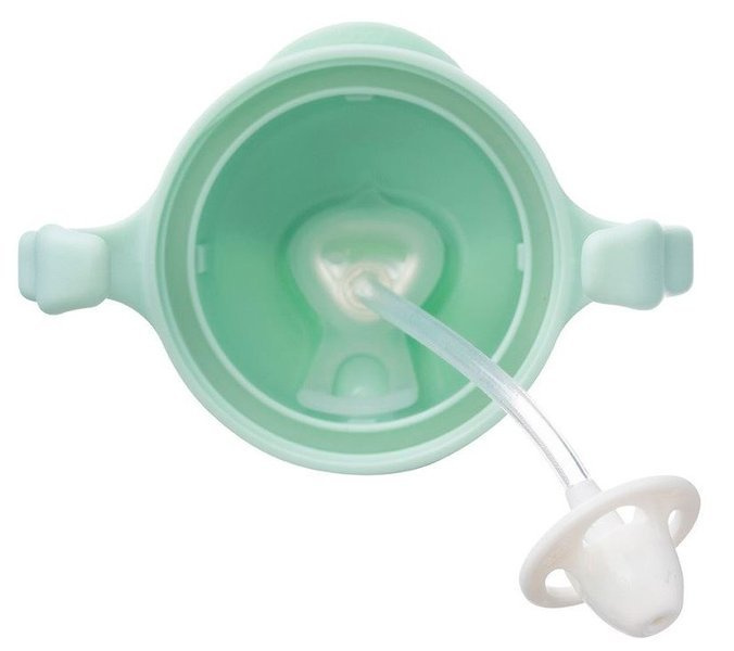 Jedyny bidon na rynku, z którego dziecko może pić przechylając go do góry nogami, tak jak z butelki. Niezastąpiony kubek do picia w domu, w podróży, na spacerze. Razem z podwójną miseczką na ulubione przekąski oraz  podróżnym śliniakiem stanowią świetny „posiłkowy niezbędnik”.