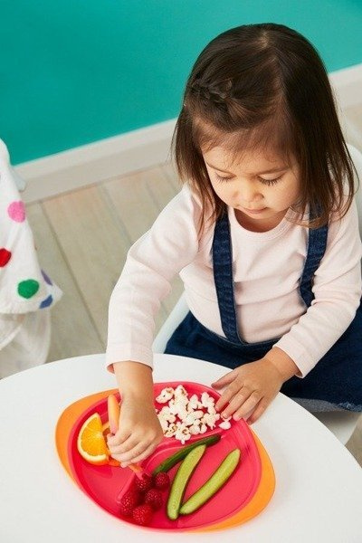 • pomaga dzieciom bezpiecznie nakłuwać i podnosić żywność;