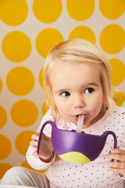 Wyjątkowy i jedyny w swoim rodzaju kubeczek o opatentowanej konstrukcji. Unikalna miseczka ze słomką sprawia, iż dziecku łatwiej spożywać posiłki o konsystencji półpłynnej oraz płynnej. Tym samym jedzenie zupki czy płatków z mlekiem jest dla dziecka dużo zabawniejsze i pozwala mu rozpocząć naukę samodzielnego jedzenia.
