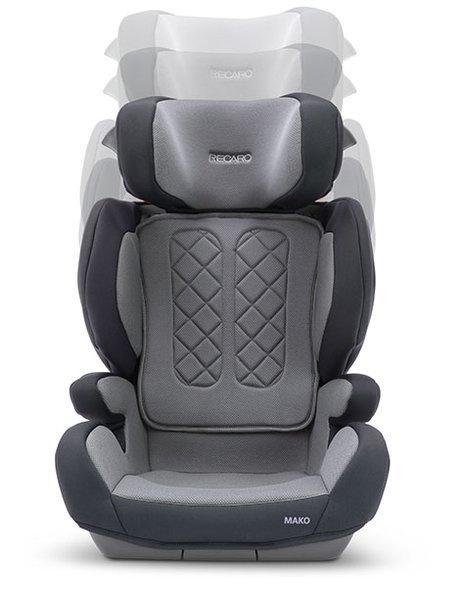 Fotelik Mako zapewnia naturalną pozycję dziecka, dzięki kilkustopniowej regulacji, która zapewnia komfort na każdym etapie wzrostu dziecka.