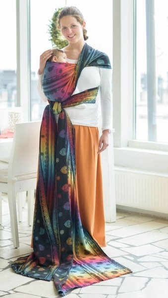 Żakardowa chusta do noszenia dzieci LennyLamb sprawdzi się zarówno w przypadku noworodka jak i starszaka. Możesz nosić maluszka na różne sposoby- z przodu, na biodrze lub na plecach, kiedy dziecko skończy 4 miesiąc życia.