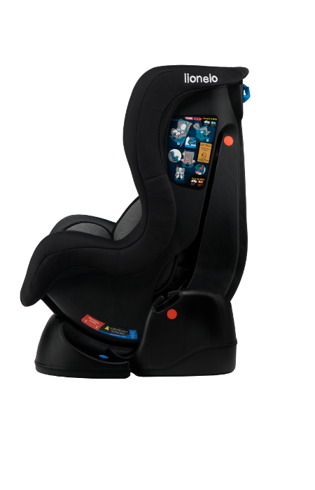 Lionelo Liam można zamontować zarówno przodem, jak i tyłem do kierunku jazdy. Poza tym odpowiednie wkładki oraz 3-stopniowa regulacja oparcia, zapewniają w tym czasie prawidłową pozycję dziecka.