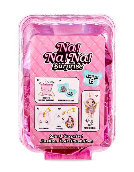 Na! Na! Na! Surprise! Laleczka to wesoła niespodzianka a jej tożsamość poznasz dopiero gdy nadmuchasz różowy balon, gdy skończysz wystarczy, że go zdusisz, wtedy wystrzeli z niego kolorowe konfetti! Twoja laleczka Na! Na! Na! Surprise! oprócz balonu ukryta jest w breloku - pupilu, dzięki temu możesz ją zabrać gdzie tylko chcesz! Laleczki mają śliczne długie włosy, w zestawie znajdziesz również imię przypisane właśnie dla Twojej lalki.