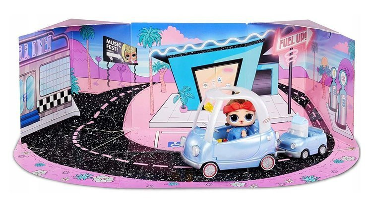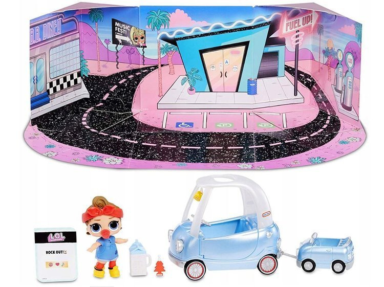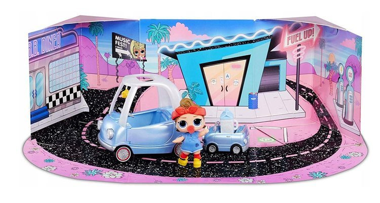 Pudełko w które zapakowana jest lalka z akcesoriami, pełni rolę “tła”, tło odpowiada tematyce lalki, może być to estrada, trasa samochodowa, lodziarnia czy garderoba!