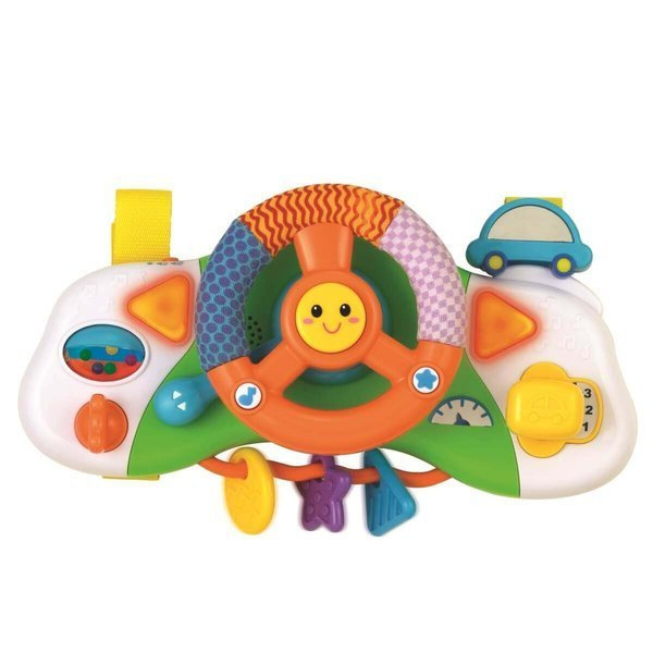 Smily Play szkoła bezpiecznej jazdy świetnie pasuje do stolika, krzesełka, łóżeczka czy wózka. Paski zapewniają stabilne i solidne mocowanie. Malec ma do dyspozycji kierownicę, dźwignię zmiany biegów, stacyjkę, klakson, kierunkowskaz i boczne lusterko - słowem wszystko, co niezbędne, by ruszyć w drogę.