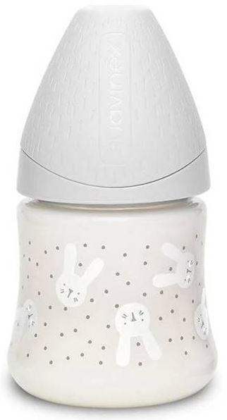 Suavinex Butelka 150ml Premium smoczek okrągły silikonowy o wolnym przepływie Królik szary Hygge Baby