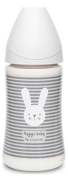 Suavinex Hygge Baby Premium  Butelka 270ml Smoczek Okrągły Silikonowy 3 przepływowy Królik Szary