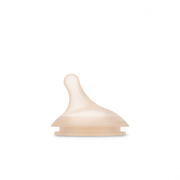 Kształt smoczka sprawia, że dziecko przyjmuje taką samą pozycje i mięśnie ust pracują tak samo, jak przy karmieniu piersią. Dodatkowo kształt sprawia, że nie pojawiają się pęcherzyki powietrza, ponieważ smoczek przez cały czas będzie pełen.