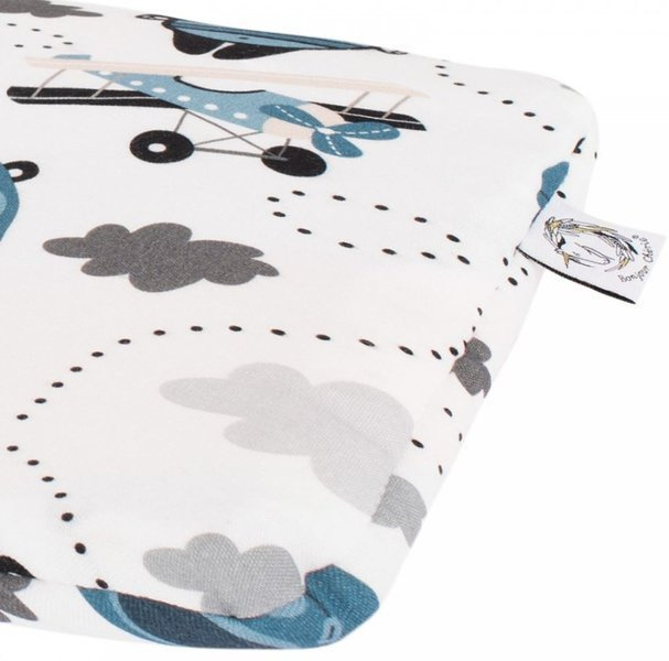 Płaska poduszeczka dla najmłodszych, wykonana jest z wysokogatunkowej bawełny 100%, którą z drugiej strony uzupełnia mięciutki plusz minky. Środek poduszki wypełniony jest antyalergiczną włókniną wysokopuszystą silikonową.
