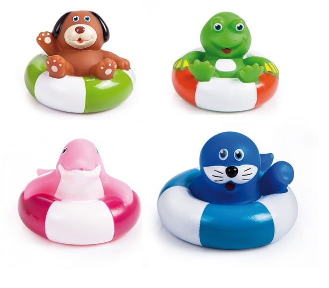 Kolorowe zwierzątka na pontonach uatrakcyjnią codzienną kąpiel malca i zachęcą do zabawy. Zabawka stymuluje koordynację wzrokowo-słuchową oraz motoryczną dziecka. Wykonana z bezpiecznego materiału.