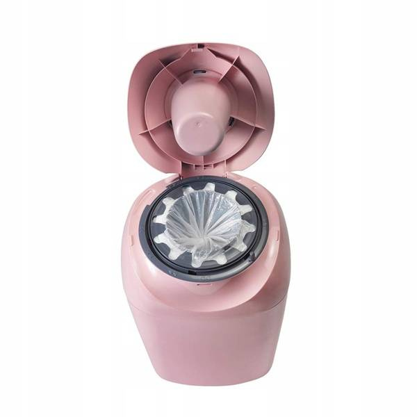 pampers zostanie zapakowany do folii, a za pomocą tłoku zostaje przeniesiony do wnętrza kosza.Pomieści od 25 do 30 pieluch.