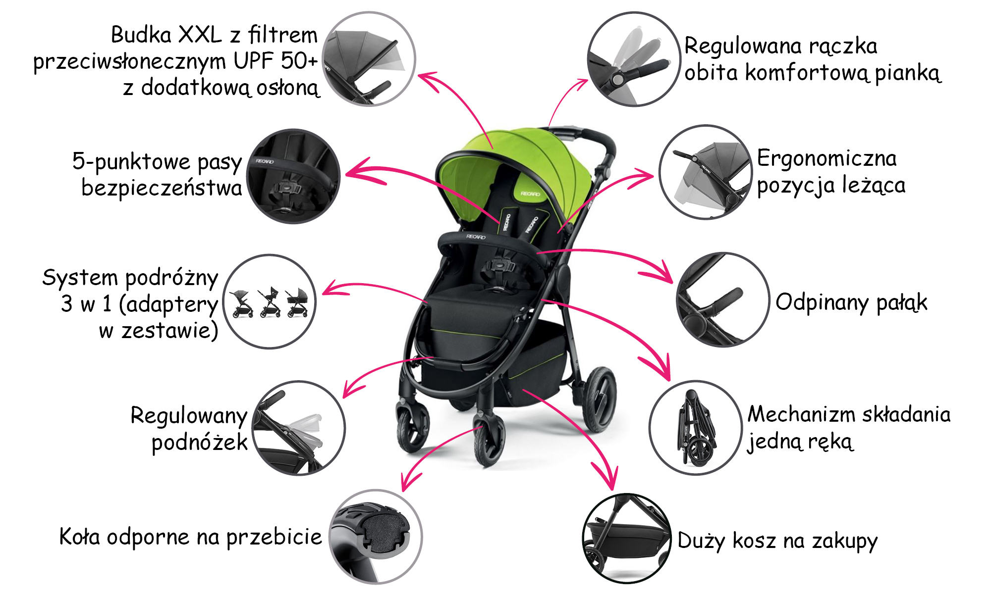 Co różni Recaro Citylife od innych producentów wózków, jest fakt, że wszystkie najważniejsze akcesoria, które umili całej rodzinie podróż znajdują już się w zestawie Recaro Citylife, dołączone przez producenta. Znajdziesz tam przede wszystkim folię przeciwdeszczową; idealna, kiedy zaskoczy Cię niespodziewany deszcz. Uchwyt na kubek dla malucha, lub rodzica; wówczas napój Malucha, czy swój masz na wyciągnięcie ręki i odpinany pałąk bezpieczeństwa, przyczepiany do siedziska i obszyty miękkim przyjemnym w dotyku materiałem.