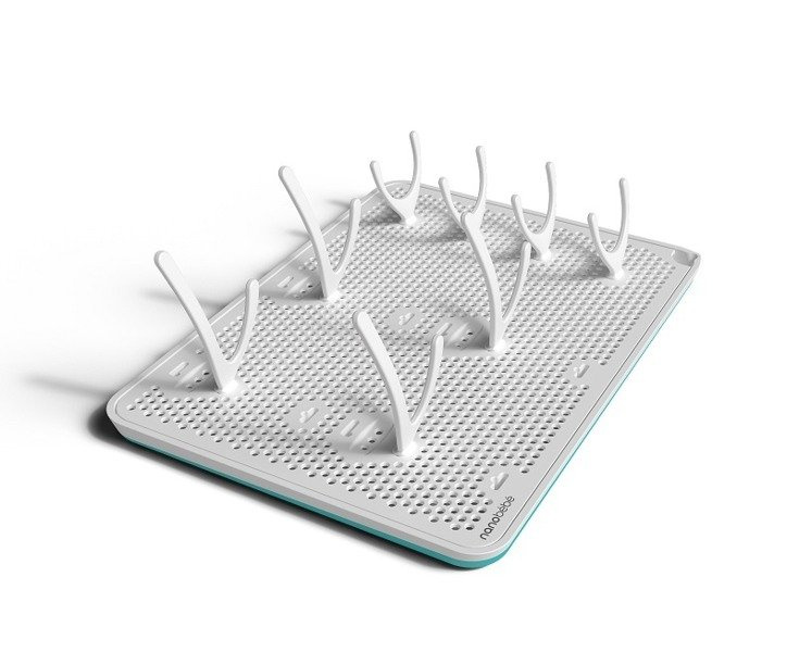 Praktyczna suszarka Nanobebe do akcesoriów do karmienia dla niemowląt, została zaprojektowana tak, aby w szybki i higieniczny sposób wysuszyć smoczki i butelki.