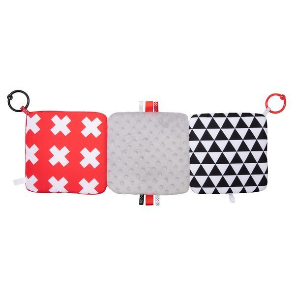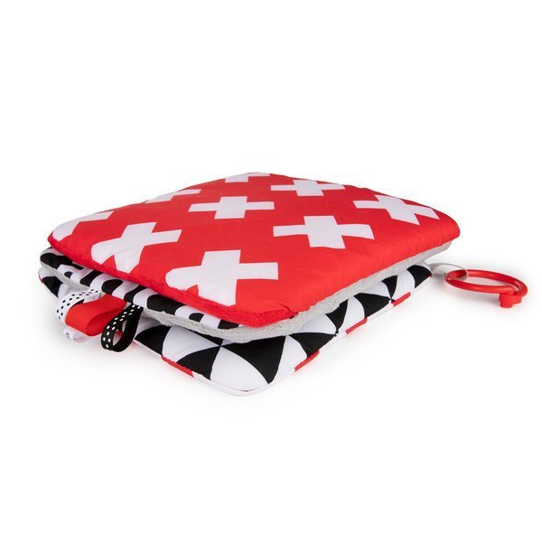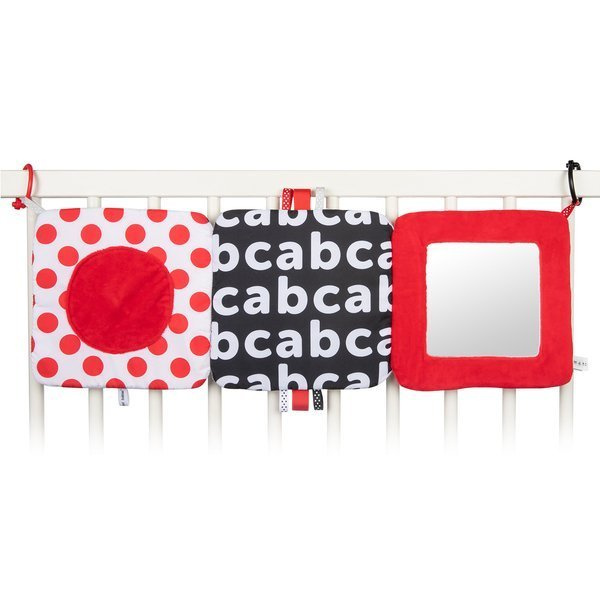 Miękka i szeleszcząca zabawka sensoryczna już na początku przypadnie do gustu niemowlakowi, ze względu na kontrastowe odcienie czerni, bieli i czerwieni, które dziecko zaczyna rozróżniać jako pierwsze. Duże lusterko kontrastowe Sensory Toys Canpol Babies można postawić przed leżącym na brzuszku maluszkiem, żeby zachęcić szkraba do wzmacniania mięśni i podnoszenia główki. Można je również zawiesić na szczebelkach łóżeczka lub przyczepić do maty za pomocą specjalnych zaczepów z magnesem. Różne struktury kolory i wydawane dźwięki z pewnością zainteresują maluszka i będą stymulowały umiejętności zmysłowe i motoryczne i manualne.