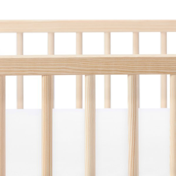 Materiały jakich użyto w produkcji tego łóżeczka to drewno sosnowe.
