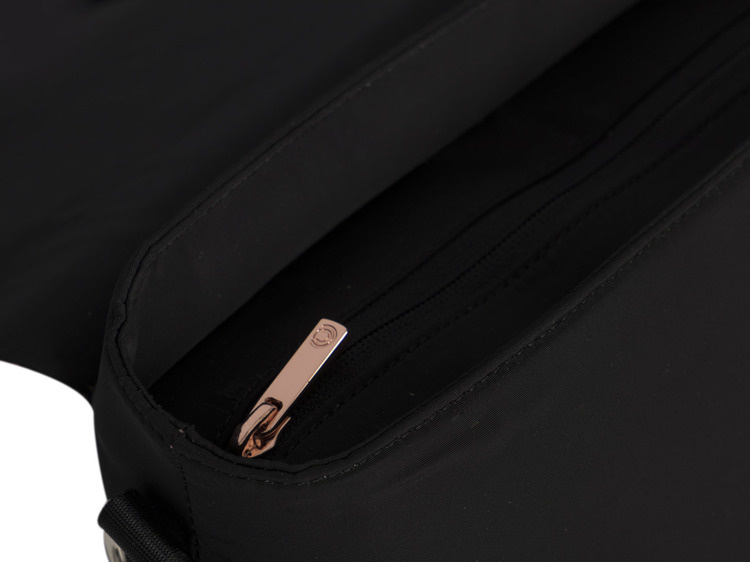 Zapinana klamrą oraz zamkiem błyskawicznym, co uniemożliwi niepowołanym rękom (a także rączkom) szperanie w jej zawartości.