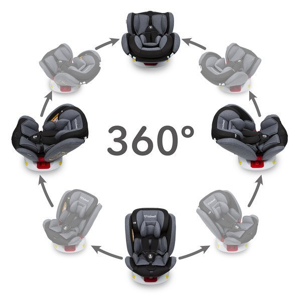 Fotelik samochodowy Kidwell Orbit to produkt przeznaczony na cały okres użytkowania, począwszy od pierwszego dnia życia aż do nawet 12 lat lub do osiągnięcia 150cm wzrostu. Posiada uzyskane normy bezpieczeństwa ECE R44-04.