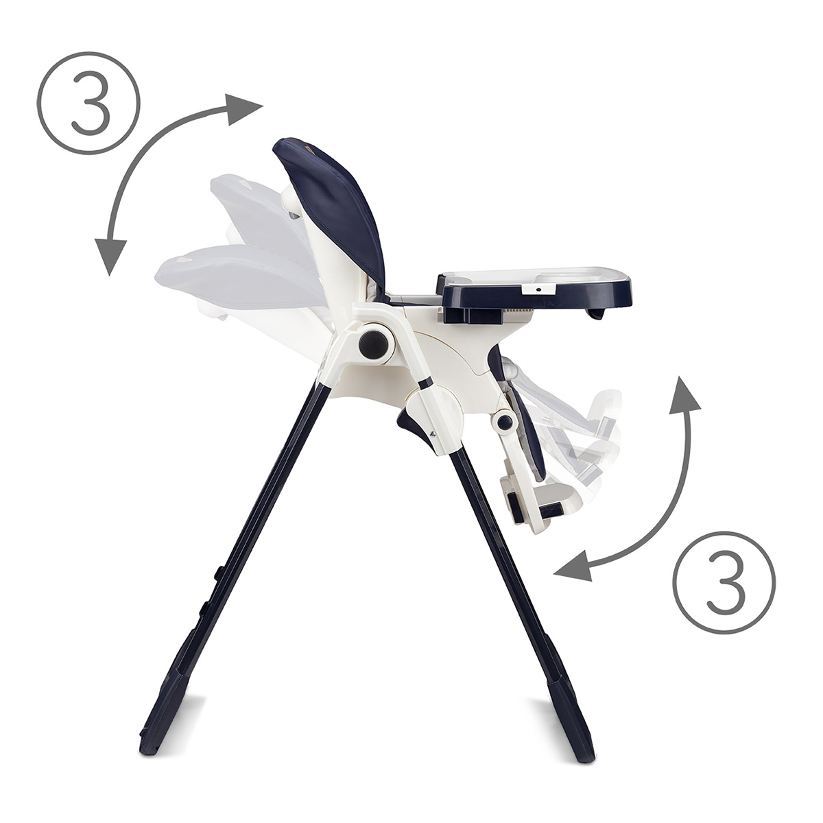 Krzesełko PRIME posiada 3-stopnie regulacji kąta nachylenia oparcia oraz dodatkowe 3 regulacje podnóżka. Wszystko po to, by Twoje dziecko zawsze siedziało wygodnie i bezpiecznie podczas spożywania posiłków.
