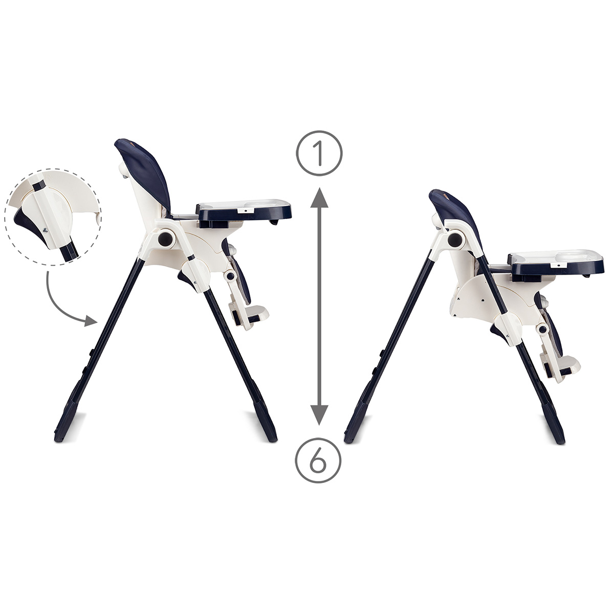 Regulacja wysokości siedziska daje aż 6 możliwości jego ustawień. To nie tylko komfort, ale także swoboda dla Ciebie i Twojej Pociechy. Dzięki możliwościom ustawień bez problemu dostosujesz wysokość dziecka do osoby karmiącej czy stołu przy którym wspólnie będziecie spożywać posiłki.