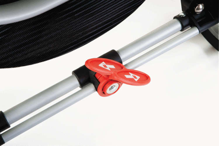 Płynnym ruchem w przód możemy łatwo złożyć spacerówkę oraz przenosić ją jak torbę, na pasku.Nie musimy obawiać się, o zabrudzenie tapicerki wózka, gdyż będzie schowana do wewnątrz.