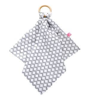 Gryzak z przytulanką Motherhood jest wykonany z najlepszych materiałów: drewniane kółeczko oraz bawełniana pieluszka muślinowa.