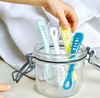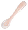 Uchwyt wyprofilowano w taki sposób, by szkrab mógł wygodnie go trzymać, a dodatkowa wypustka pod spodem pozwala odłożyć łyżeczkę tak, by nie dotykała powierzchni. Kształt łyżeczki jest dopasowany do małej buzi, z kolei miękki materiał nie uszkodzi delikatnych dziąseł.