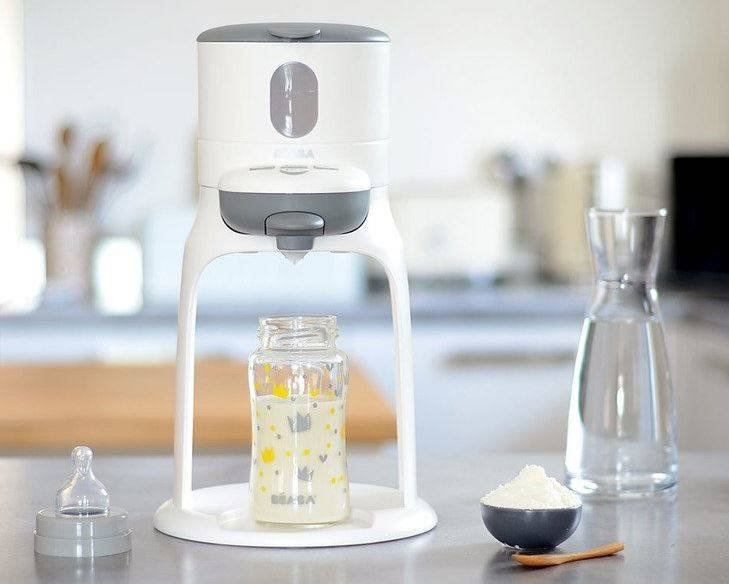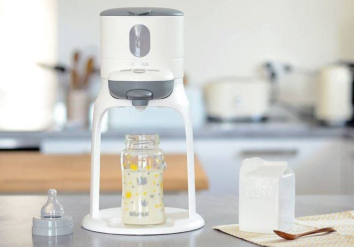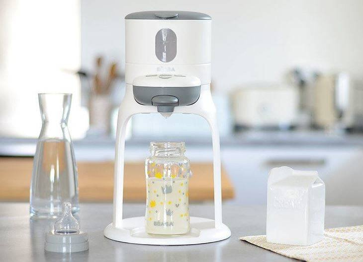 W górnej części znajduje się pojemnik do podgrzewania wody z okienkiem do kontrolowania jej poziomu. Do wyboru są dwie opcje: Temperaturę pokojową (22 stopnie Celsjusza) Oraz temperaturę ciała (37 stopni Celsjusza). Po wybraniu temperatury wystarczy podstawić butelkę z odmierzoną ilością mleka modyfikowanego, nacisnąć przycisk i już - reszta dzieje się sama. Następnie wystarczy zakręcić butelkę, wymieszać i posiłek gotowy.