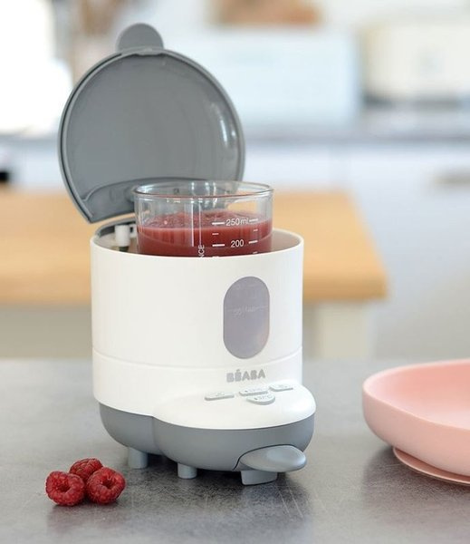 W ekspresie podgrzejesz też butelkę lub słoiczek z jedzeniem malca (od 90 do 380 ml pojemności). Wystarczy wstawić butelkę/słoiczek do pojemnika z wodą i wybrać jedną z dwóch dostępnych temperatur: 70 stopni Celsjusza dla szklanych butelek oraz mniejszych słoiczków, oraz 90 stopni Celsjusza dla butelek plastikowych, oraz słoiczków o większej pojemności. O zakończeniu cyklu informują sygnały dźwiękowe.