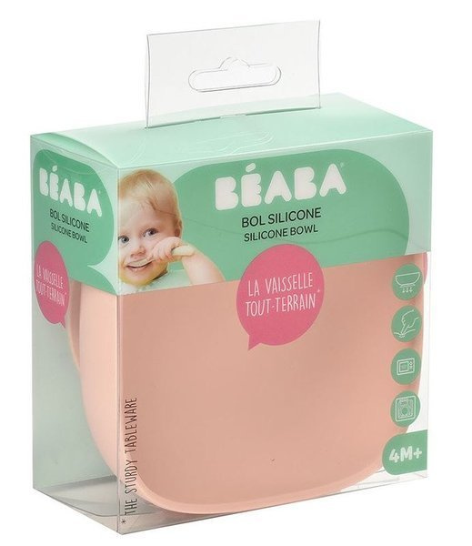 Silikonowa miseczka z przyssawką francuskiej marki BEABA posiada ergonomiczny, kwadratowy kształt z wysokimi, zaokrąglonymi po bokach brzegami, które ułatwiają dziecku samodzielne nabieranie posiłku na widelec lub łyżkę. Naczynie ma na spodzie antypoślizgową przyssawkę, dzięki czemu jest stabilne i dobrze trzyma się stołu. Można ją myć ręcznie i w zmywarce, a także podgrzewać w mikrofalówce.