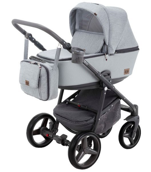 Na stelażu, poniżej gondoli/siedziska zawieszony jest zapinany kosz na zakupy. Dzięki swojej pojemności świetnie zda egzamin w sklepie, ale też na wycieczce czy spacerze. Można w nim także przechowywać moskitierę czy folię przeciwdeszczową, by zawsze mieć je pod ręką. Na akcesoria maluszka przewidziano dopasowaną kolorystycznie torbę dla mamy. Dzięki doszytym zaczepom można ją zawiesić na rączce wózka. Wygodny uchwyt na butelkę sprawdzi się także doskonale jako uchwyt na kubek z kawą - atrybut chyba każdego rodzica.