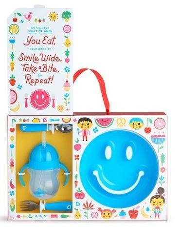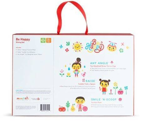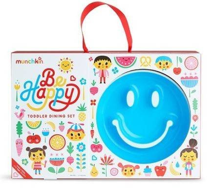 Munchkin Zestaw Upominkowy z Talerzykiem, Sztućcami i Kubkiem pozwoli dziecku w przyjemny sposób rozpocząć naukę samodzielnego jedzenia. Sztućce Raise skonstruowano w taki sposób, by odłożone nie dotykały blatu. Dzięki temu nie brudzą się (i otoczenia). Talerz Smile 'n Scoop szerokim uśmiechem zachęca do jedzenia a dzięki przyssawce stabilnie siedzi na swoim miejscu. Kubeczek ze słomką AnyAngle zabezpiecza przed rozlewaniem. Można z niego pić pod dowolnym kątem dzięki obciążnikowi zamontowanemu wewnątrz.