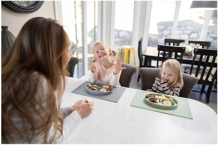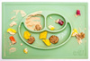 Innowacyjna silikonowa podkładka mocno przywiera do stołu czy innej gładkiej powierzchni, na której ją położysz, dzięki czemu małe dziecko nie będzie w stanie jej przesunąć czy zrzucić. Trójdzielny talerz pozwala podzielić posiłek na porcje, co ułatwi malcowi naukę samodzielnego jedzenia, a z czasem także – rozpoznawanie kategorii pokarmów. Dodatkowo, zaprojektowany podział ułatwi rodzicowi podanie posiłku złożonego z odpowiedniej ilości warzyw i innych ważnych składników żywieniowych. Radosny wygląd – dwie mniejsze przegródki przypominają kształtem oczy, a większa uśmiech – sprawia, że domowe posiłki będę maluchom pozytywnie się kojarzyć. Nadaje się do serwowania zarówno zimnych, jak i ciepłych potraw.