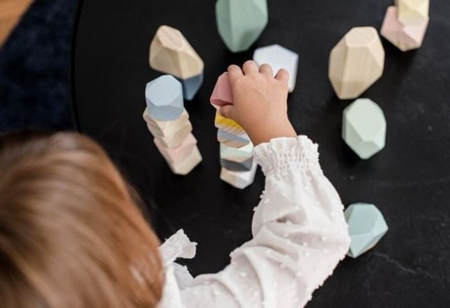 Janod drewniane kamyki Sweet Cocoon to całkiem nowe oblicze klocków. Zamiast tradycyjnych kształtów, klocki kamyki to nieregularne figury, których kształty pozwolą maluchowi rozwijać kreatywność i uczyć się nieszablonowego myślenia. Dodatkowo, dopasowując różnorodne elementy, malec ma ogromne pole do popisu dla motoryki małej. Zestaw zawiera 20 elementów. Zabawka przeznaczona dla dzieci 2-6 lat.