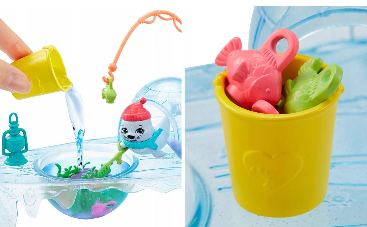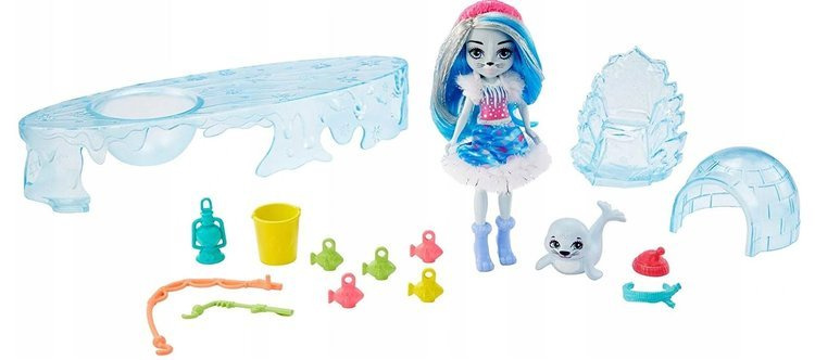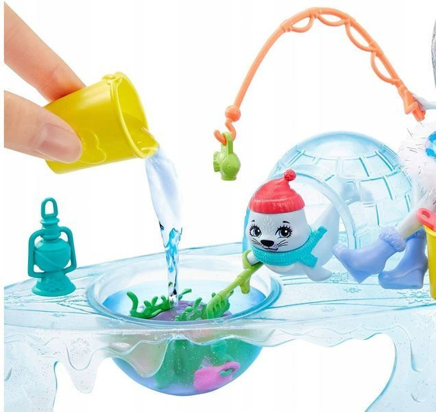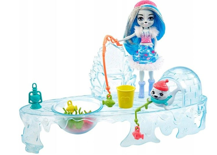 W zestawie jest igloo i przerębel, wędki oraz rybki! Wystarczy wlać wodę do przerębla i łowić ryby razem z Sashą Seal. Zabawka Enchantimals to świetna zabawa, przekonaj się i wypróbuj sam!