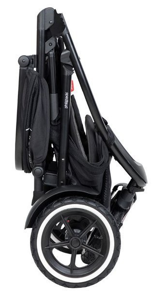 Spacerówkę Phil&Teds Sport bez problemu złożysz. Dwustopniowa blokadę zwolnisz stopą, a wózek złożysz bez pochylania się. Złożony wózek pozostanie w tej postaci, póki nie zwolnisz zabezpieczenia umieszczonego z boku ramy. Dzięki temu P&S Sport pozwala się łatwo przenosić i zmieścić do bagażnika.